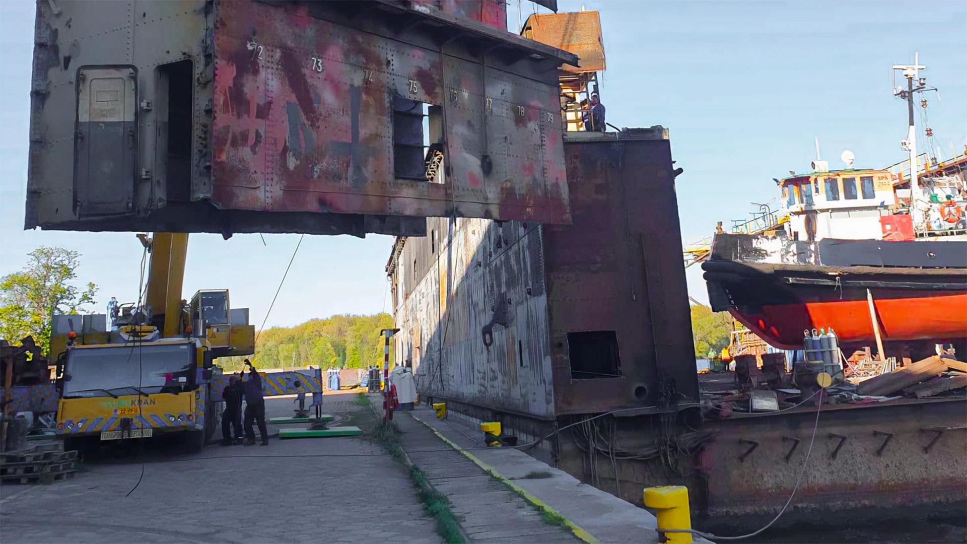 - Demontaż – usuwanie stalowych elementów przy użyciu odpowiednich narzędzi i maszyn, takich jak dźwigi, piły hydrauliczne i spawarki.